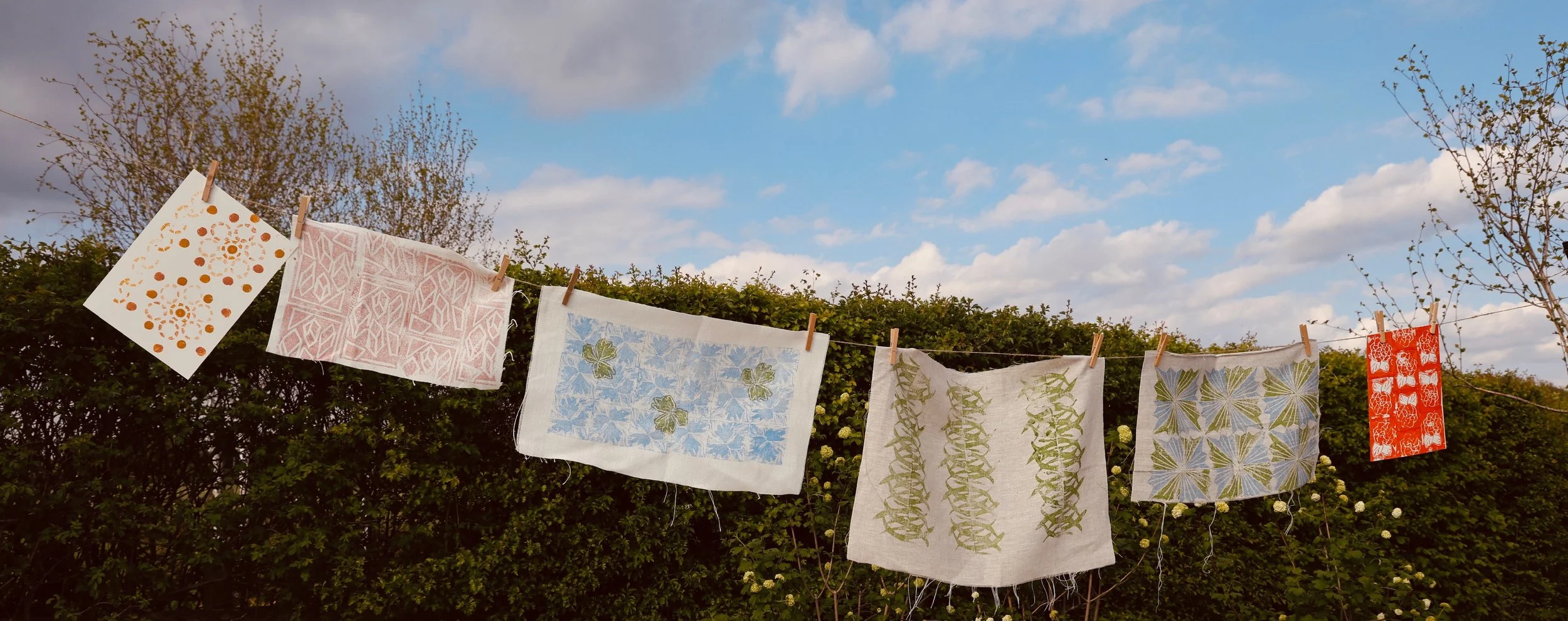 We used our Apple, Bay and Terracotta colours to print on our fabric pieces, and hung them on the line to dry while we enjoyed a delicious BBQ.