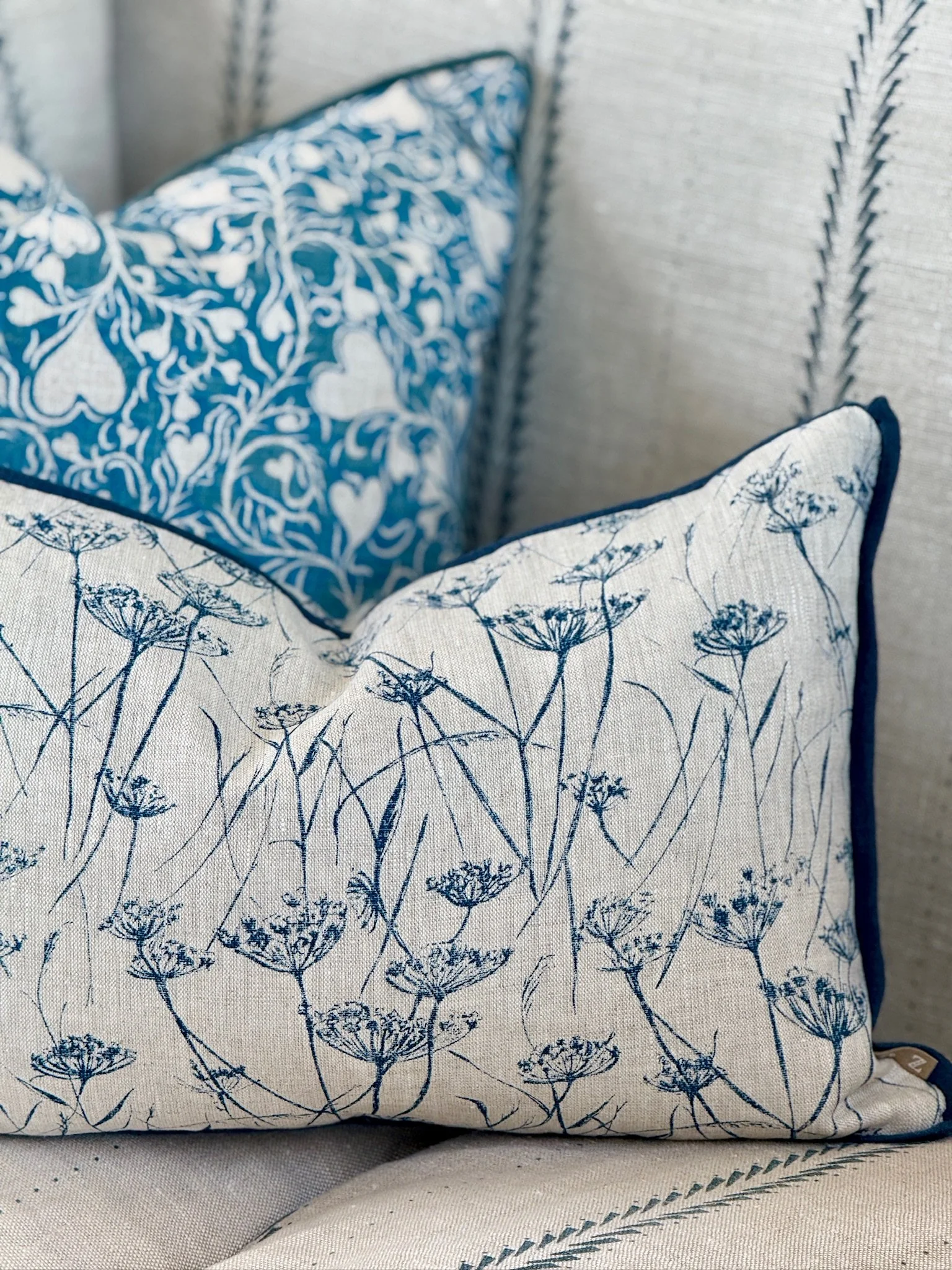 We know how much you love our Adlington Cowparsley fabric in inky, so we have redesigned the cushion to included a contrast trim for added definition.