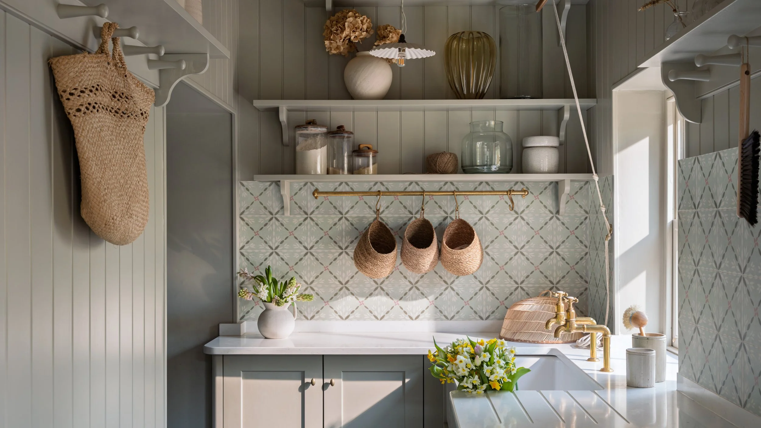 This time last year Zoe was thrilled to join the Ca’ Pietra team photographing our tile collection in a beautiful rectory in Lincolnshire. Take a look at these Spanish and Portuguese inspired delicate printed tiles so see their versatility. Suitable for both indoors and outdoors they’ll add a little colour and pattern without dominating a space. Porto Tile in Olive featured in the utility room above.