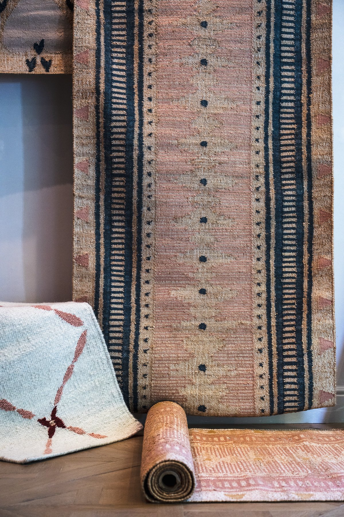 Hand woven by Coral & Hive, adding a rug or runner in these terracotta tones will create contrasting textures with soul. Featured here is our Ziggy Terracotta and Inky runner, Ziggy Terracotta and Ochre Runner and Porto Nu Terracotta and Port sample of a rug.